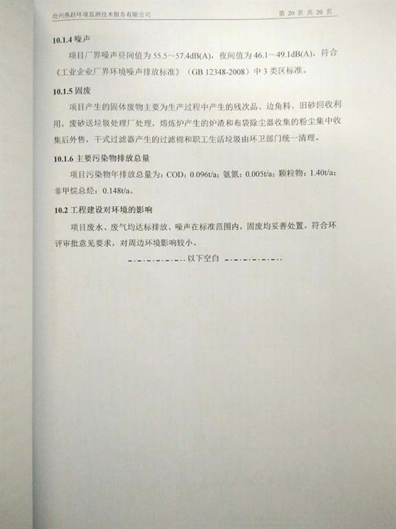 河北及時(shí)雨泵業(yè)有限公司鑄造分廠(chǎng)升級(jí)改造項(xiàng)目竣工環(huán)境保護(hù)驗(yàn)收意見(jiàn)公示