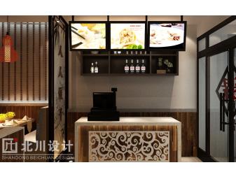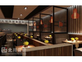 設計方案:此餐廳是人人餐飲公司旗下高端店形象。餐廳的設計是從傳統中式風格中演變出來的現代中式,中式風格給人一種莊嚴,典雅。中式是國人對傳統的傳承,是中國文化的精華。餐廳融合了現代的藝術氣氛,使得餐廳在具備莊嚴典雅的同時又給人一種舒適,放松的感覺。這是餐廳設計的根本理念。 餐廳的特色: 大廳中的磚紋墻,傳統木質造型,現代色彩表現。在設計的時候充分理解作為用餐功能的空間,在照顧親切氛圍的大背景下,體現現代中式的時尚儒雅。手繪餃子工藝流程畫是中國文化的博大精髓.仿佛終于找到了隱世的文化空間,柜中的書更是讓人置身于文學的國度,久久不愿離去