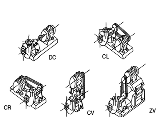 渣漿泵有多種安裝方式,泵的吐出口可沿鉛垂面旋轉(zhuǎn)安裝。傳動方式有彈性聯(lián)軸器方式傳動(DC傳動),